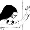Description: Norio from Narutaru, with his head against a wall as if in defeat.